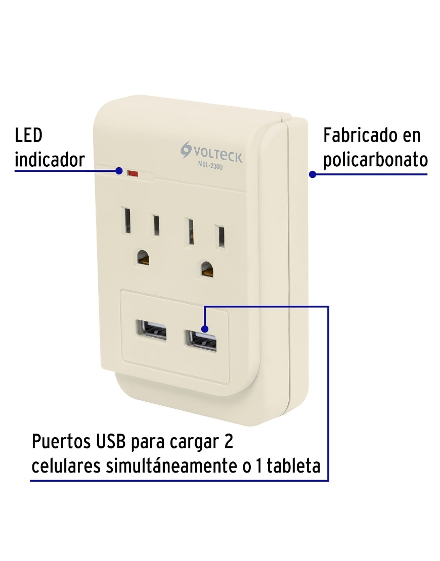 MULTICONTACTO CON DOS ENTRADAS Y DOS PUERTOS USB