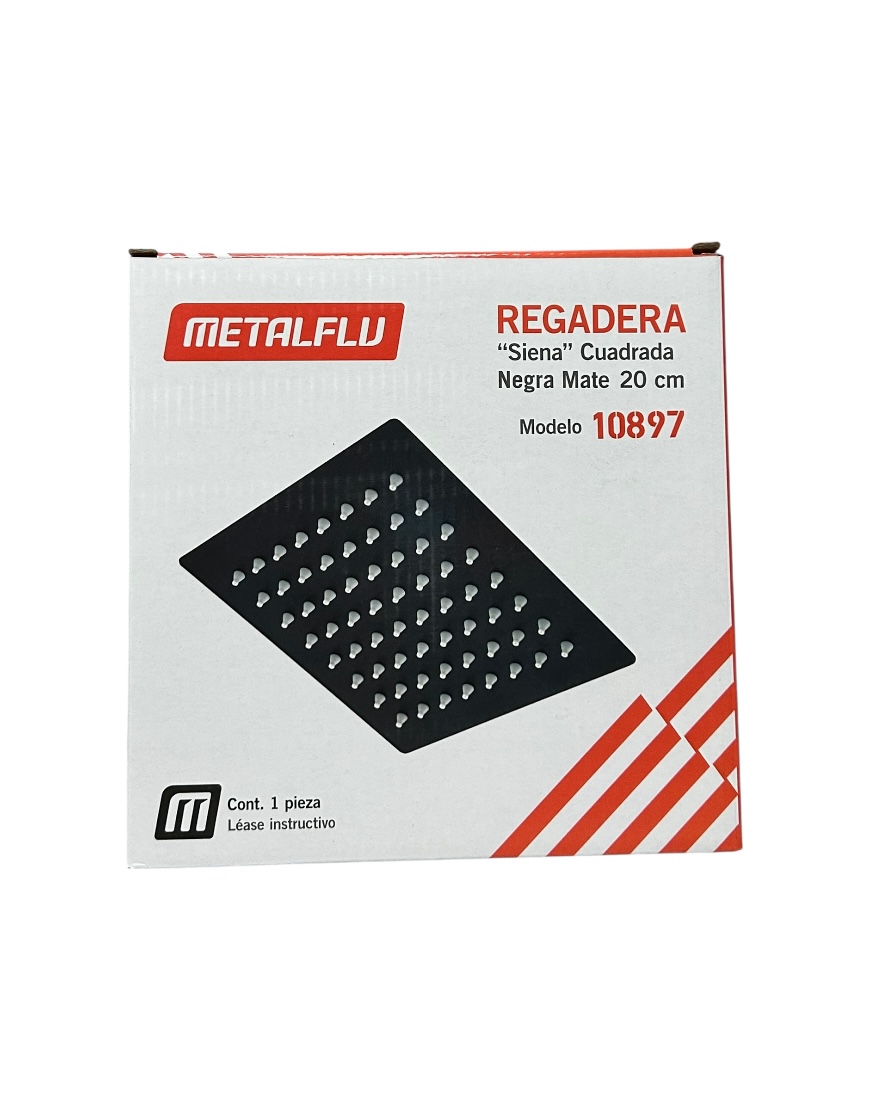 - REGADERA CUADRADA NEGRA 20CM